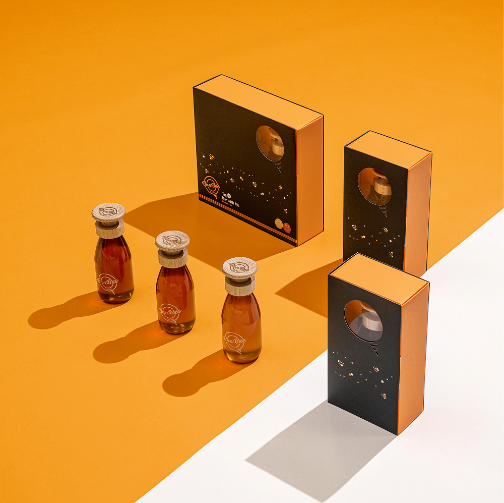 玻璃外殼內的純淨蜂蜜,搭配木質雷雕密封蓋,